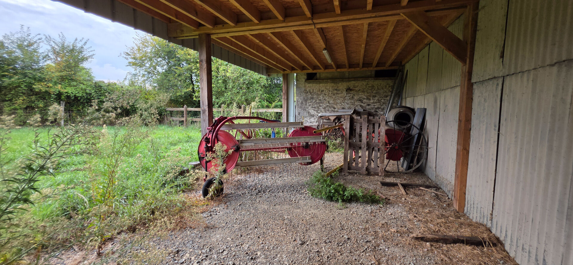 Propriété sur env. 4ha (idéal Chevaux) composée d'une Maison de plain pied : Salle à manger/cuisine aménagée et équipée (poêle à bois), chambre/bureau, 2 autres chambres, salle d'eau et wc. Étage complet à aménager DPE : E Et nombreuses dépendances : hangar, préau/garage, anciennes écuries avec partie sellerie, box, atelier et cave. 165.000 euros FAI (dont 6,45 % de FA TTC) / Réf 6720 (6.45 % honoraires TTC à la charge de l'acquéreur.)