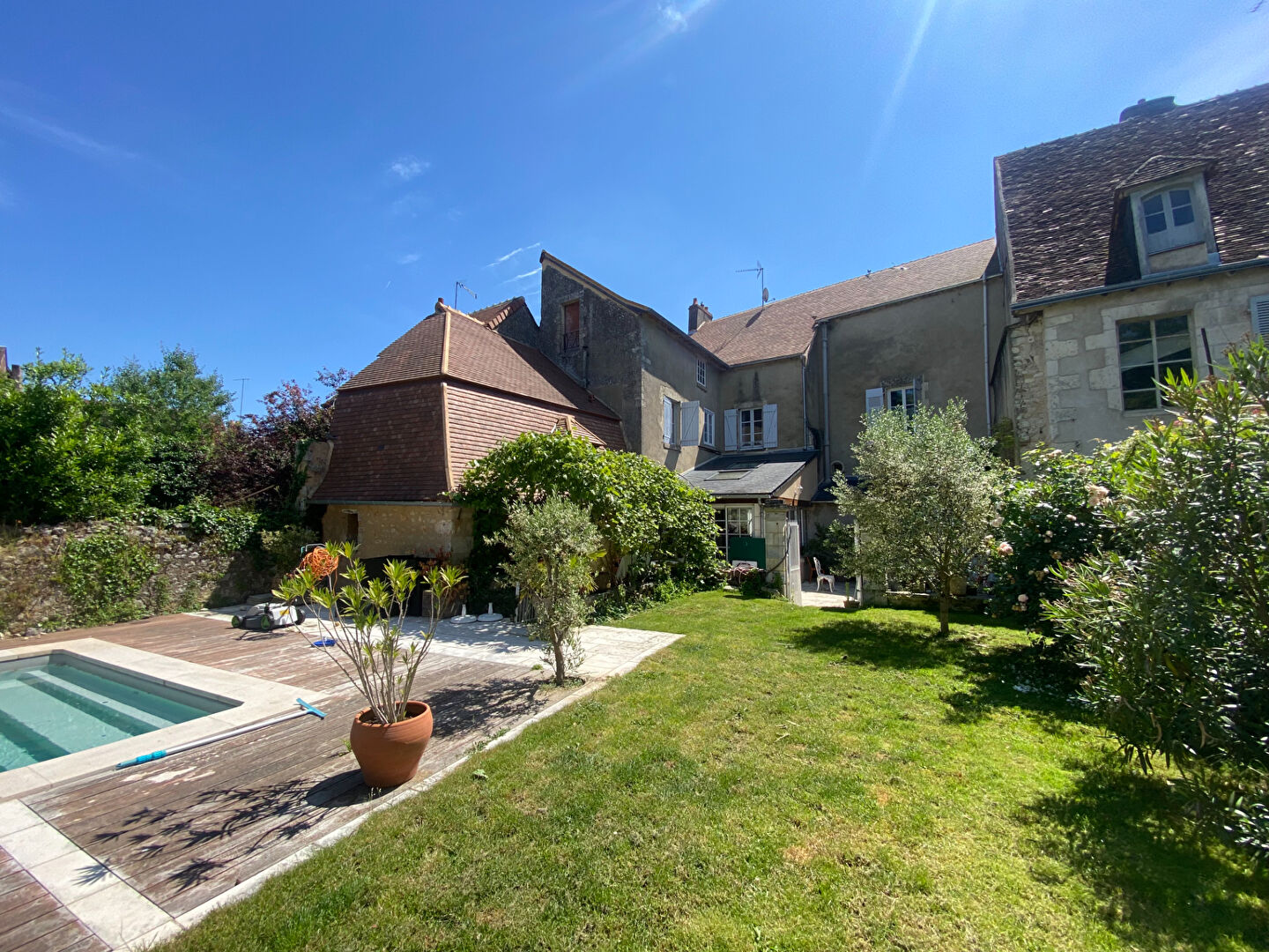 UNE EXCLUSIVITE LA ROCH'IMMO, COEUR DE VILLE, au calme, Très belle DEMEURE composée d'une Jolie Maison bourgeoise comprenant au rez-de-chaussée : entrée, salon, salle à manger, cuisine, arrière-cuisine, chambre/bureau, chaufferie et wc. A l'étage : dégagement, mezzanine, 5 chambres dont une avec coin douche, salle d'eau/wc. DPE : D Cave, grenier et garage. ET son agréable maison d'amis disposant: séjour/cuisine et wc au rez-de-chaussée. Chambre avec coin douche à l'étage. Remises. puits. Terrasse Jardin avec piscine. L'ensemble sur 548m². 395.350 euros FAI (dont 5.5%Fa ttc) Réf : 6805 (5.43 % honoraires TTC à la charge de l'acquéreur.)