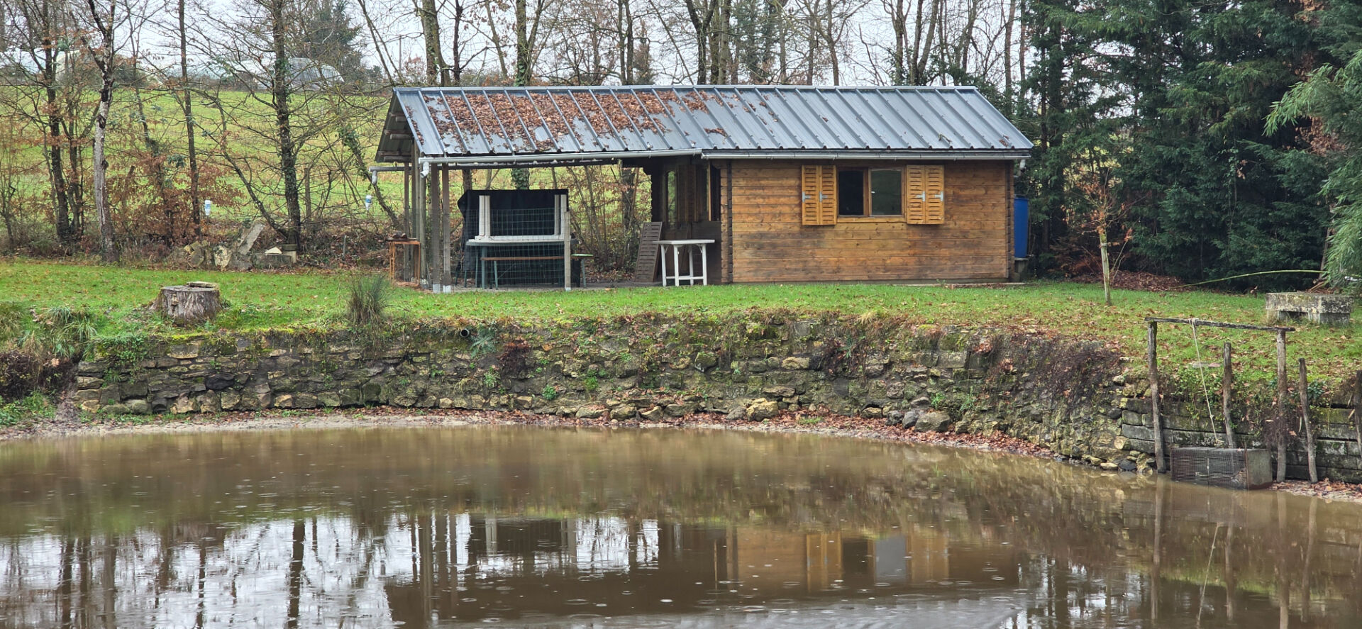 Charmant terrain d'agrément avec plan d'eau, Il comprend : Un chalet en bois avec terrasse, idéal pour profiter des beaux jours, un garage double. Toilettes sèches Un terrain partiellement boisé, propice à la détente et aux loisirs de plein air. L'ensemble sur 7.640m² 31 000 euros FAI (dont 10.71% FA ttc) Réf : 6818 (10.71 % honoraires TTC à la charge de l'acquéreur.)